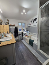 Dés l'entrée, un hall avec placard dessert une grande piéce de vie avec un salon séjour de 42 m² suivi d'une jolie cuisine équipée de prés de 11 m² avec accés à la cave, une salle de bain avec douche, baignoire et double vasque, un WC.