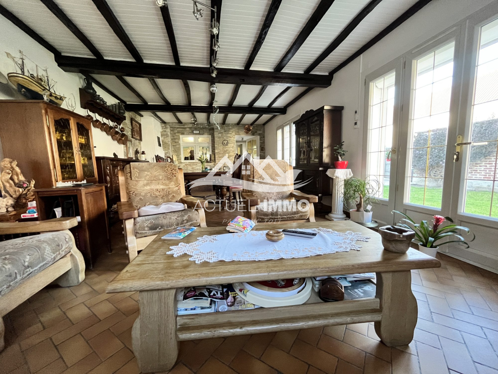Sur la commune de Bully les Mines Ancien corps de ferme en plain-pied au charme insoupçonné. Entrez sous un porche de 55m2 qui est une ancienne étable et qui reçoit actuellement un garage carrelé de 55m2 pour y garer 2 véhicules et stocker. Et découvrez après ce porche un véritable havre de paix avec un jardin d'environ 150m2 sur l'avant de la maison avec une terrasse à l'ouest pour profitez du soleil paisiblement en fin de journée et d'un jardin d'environ 450m2 à l'arrière de la maison avec une terrasse de 60m2 exposée à l'est pour en profiter le matin et en début d'après midi. Tout çà complètement à l'abri des regards, clôturé, dans un silence parfait et avec deux dépendances. La maison est en plain-pied pour environ 120m2 habitable sur une parcelle de 900 m2. Elle est constituée d'un hall d'entrée qui dessert les pièces de vie à gauche et l'espace nuit et bain à droite. À gauche: salon/séjour avec poutre de l'ancienne étable réutilisée pour garder l'authenticité du produit, cuisine équipée. À droite: un couloir dessert 2 grandes chambres de plus de 14m2, possibilité d'en faire une troisième dans le dressing actuel de 12m2, possibilité de prévoir une chambre parentale, bureau, salle de bain rénovée et dans l'air du temps avec douche italienne, une deuxième salle d'eau, arrière cuisine ou véranda avec vue sur le jardin, wc et nombreux rangement. Électricité refaite en 2014, toiture refaite en 2013, chaudière gaz de ville de 2020, rejointoyante brique du pignon en 2012, contrôle Veolia effectué pour l'assainissement: la maison est relié au tout à l'égout. Huisserie en pvc double vitrage, chauffage au gaz de ville et cheminée feu de bois à foyer ouvert. Taxe foncière 2022: 768€ À proximité du Parc Henri Darras arboré de plus de 7 hectares, pour les balades canines, en famille ou sportives, du centre ville et des axes autoroutiers vers Bethune-Bruay ou Lens/Lievin, à 40 min de Lille par l'A1 ou l'A21 À VISITER SANS TARDER.