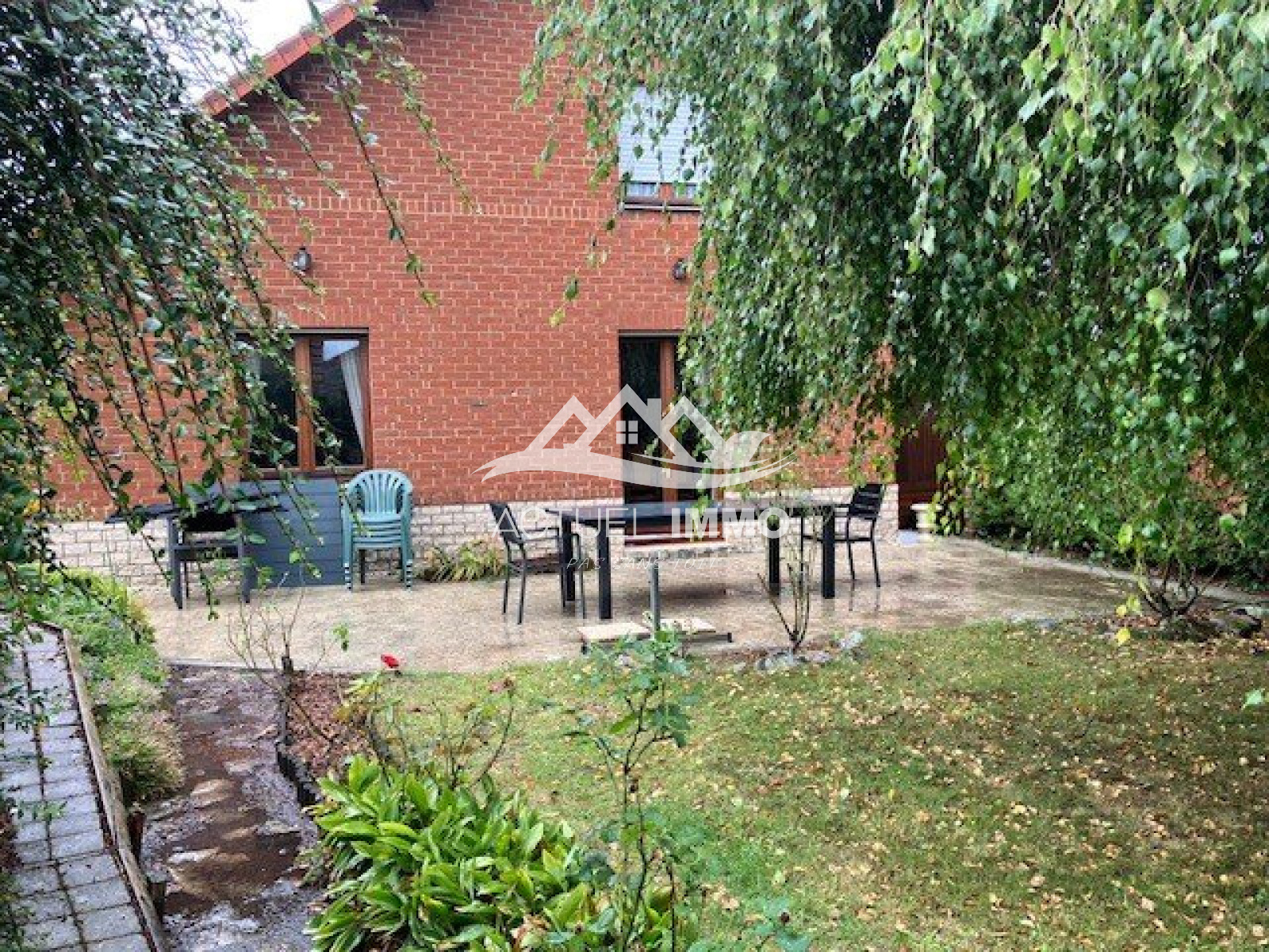 Maison individuelle en briques, à proximité du centre-ville , de la gare et des écoles composée, au rez-de chaussée, une jolie entrée avec penderie, d'un salon-séjour de 28m², d'une cuisine séparée et équipée de 18 m², d'un bureau, d'une buanderie, d'une salle de bains, un wc séparé et d'une belle chambre de 15m².