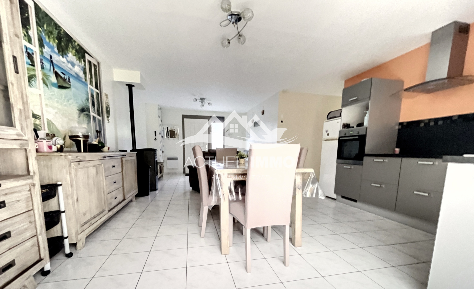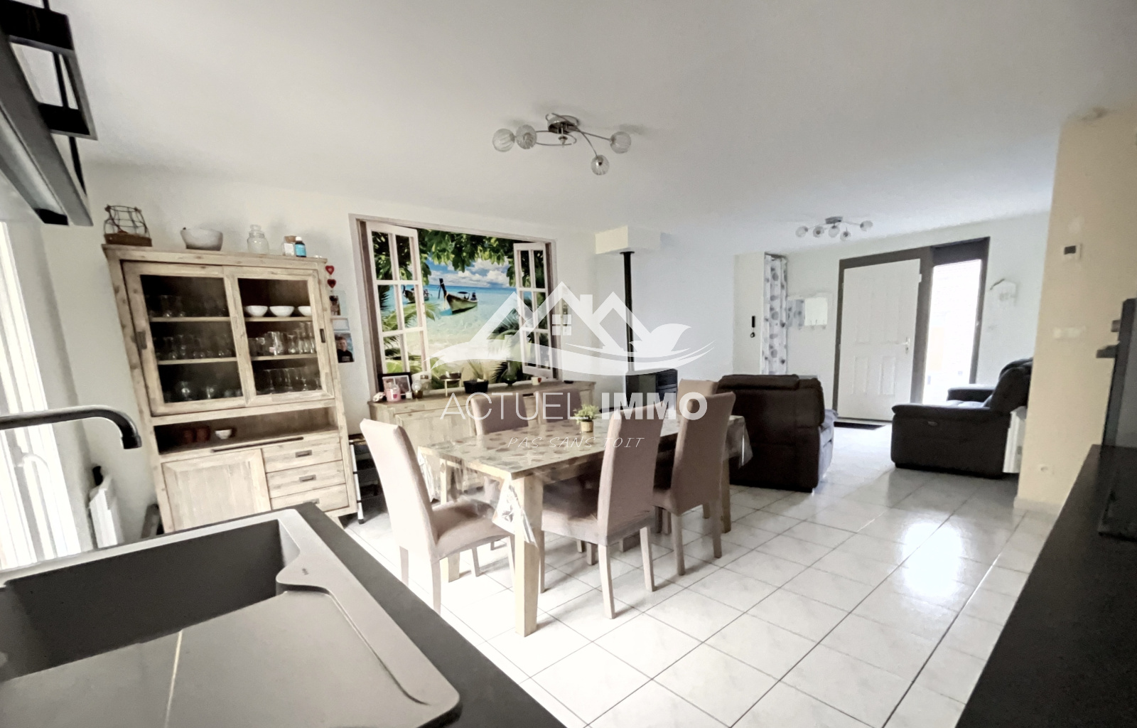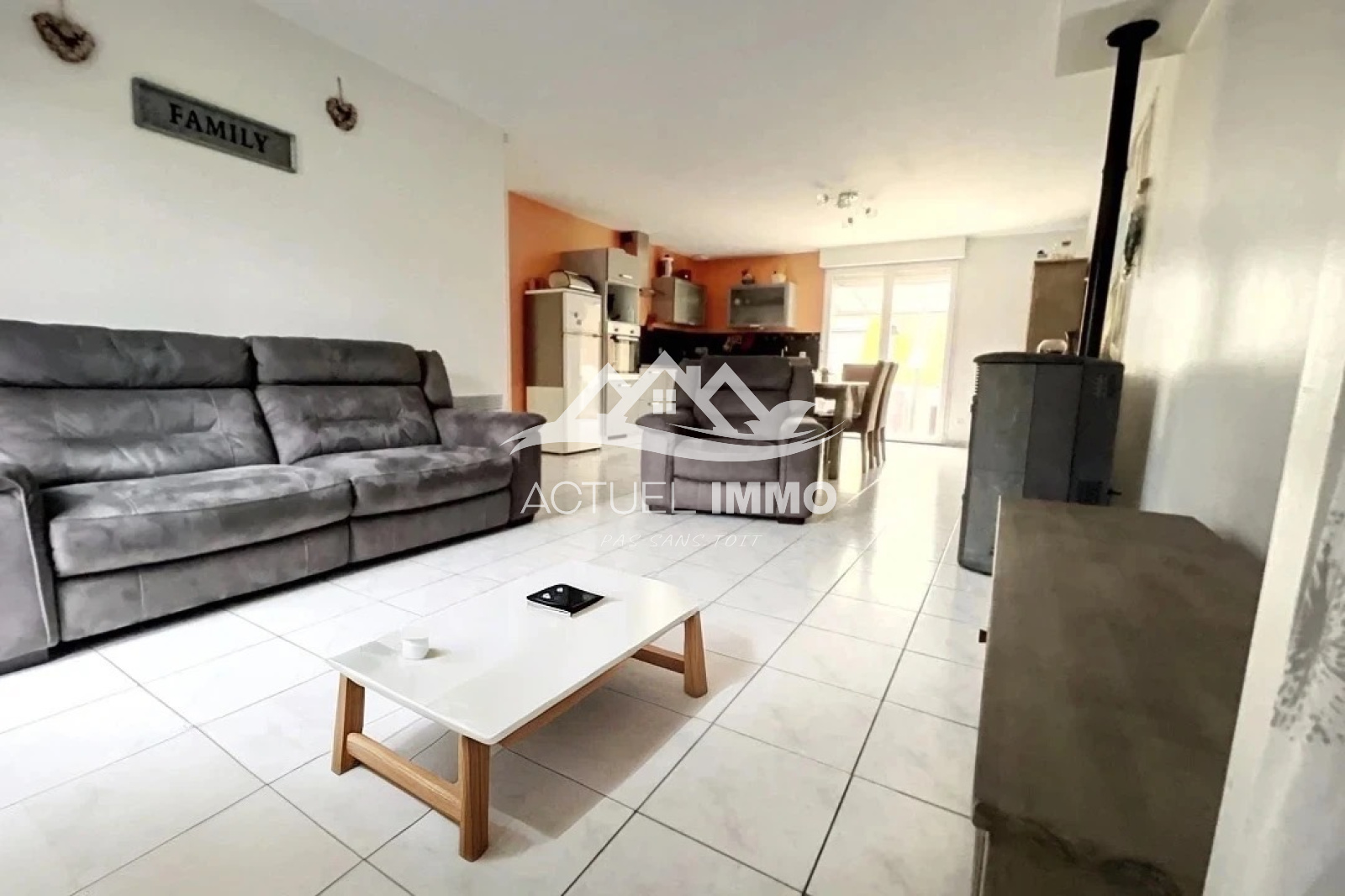 Offrant une surface habitable totale de 76 m2, c'est une maison idéale pour jeune couple seul ou avec un enfant ou retraités. La pièce de vie offre un espace entièrement ouvert entre la cuisine équipée ( four, plaque, hotte, lave vaisselle) et le salon de 38m2.