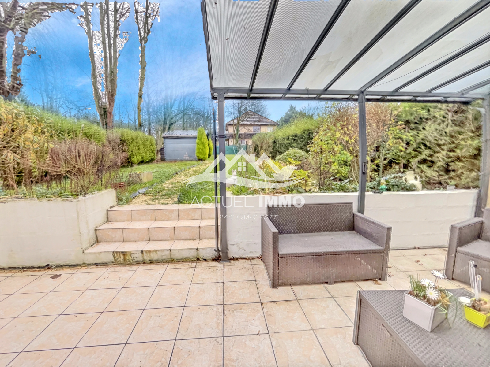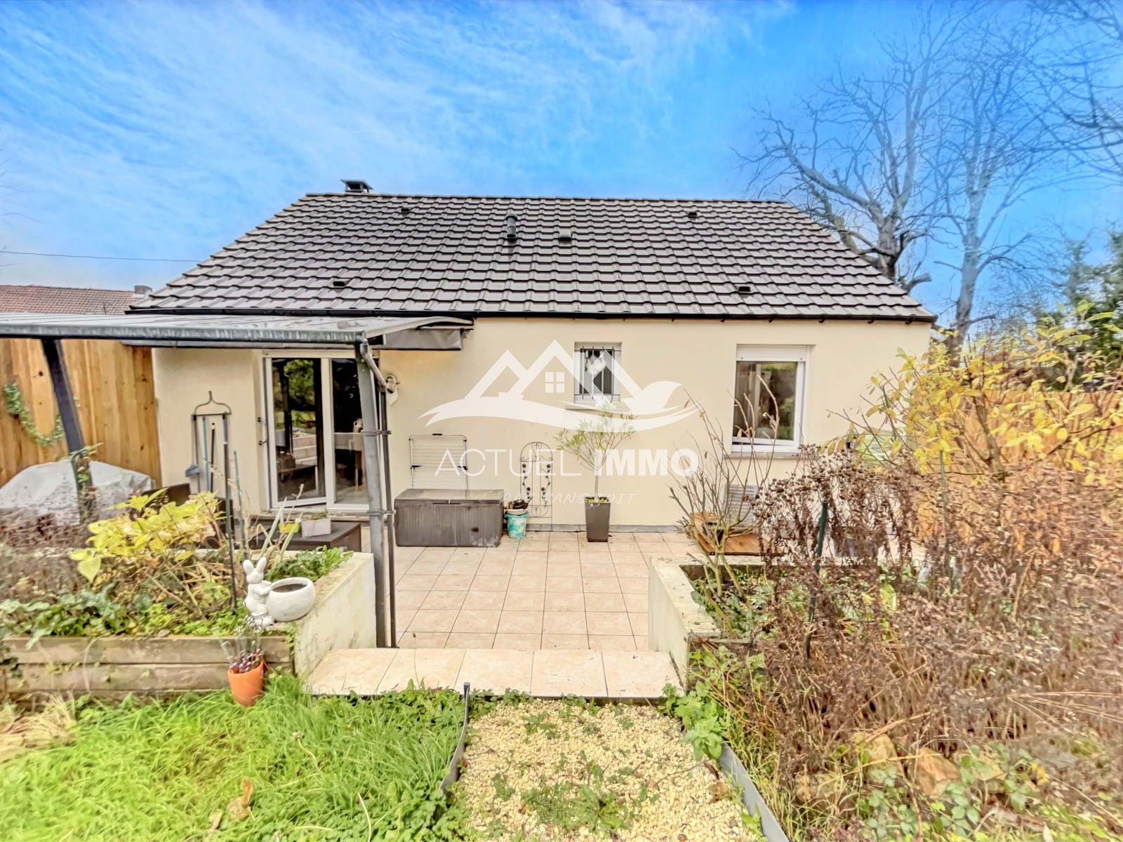 À l’arrière vous apprécierez la terrasse carrelée de 30m2 sous pergola, un chalet de jardin, un jardin de 300m2 entièrement clos et exposé sud-est.