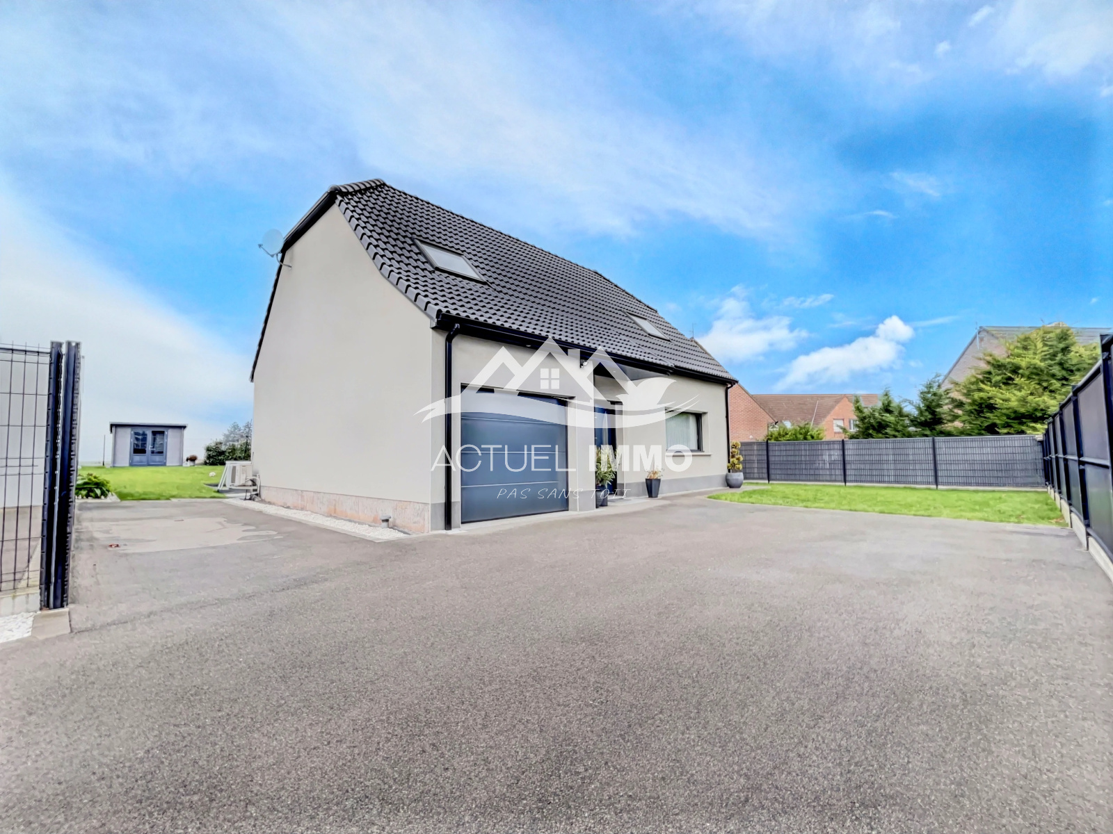 Superbe maison moderne de 2018 avec jardin exposé Sud-Ouest à Haisnes Découvrez cette magnifique maison de lotissement, construite en 2018 par Habitat Concept, encore sous garantie dommages-ouvrage. Sur une parcelle généreuse de 642 m², ce bien allie modernité, confort et praticité, parfait pour une famille ou un jeune couple en quête d’un cadre de vie paisible et fonctionnel. •Au rez-de-chaussée : Dès l’entrée, un couloir équipé d’un vestiaire vous accueille et dessert une splendide cuisine aménagée et équipée, ouverte sur le salon et le séjour. La pièce de vie baigne de lumière grâce à ses larges ouvertures et offre un accès direct au jardin. Une buanderie pratique avec un accès au jardin complète ce niveau. •À l’étage : Un palier mène à trois chambres de belle taille, idéales pour accueillir votre famille. Une salle de bain moderne équipée d’une douche, d’une vasque et d’un second WC assure confort et praticité. Les extérieurs: Profitez d’un espace extérieur pensé pour votre bien-être : •Une entrée en macadam permet de stationner jusqu’à quatre véhicules. •Un jardin entièrement clôturé et sécurisé, exposé Sud-Ouest, idéal pour profiter du soleil en toute tranquillité. •Une grande terrasse de 43 m², parfaite pour vos repas en extérieur + emplacement pour une piscine autoportée. Les atouts du bien •Fenêtres en aluminium double vitrage. •Climatisation et chauffage au sol pour un confort optimal en toute saison. •Classe énergétique performante : DPE en B/B gage d’une consommation maîtrisée. Localisation idéale Située à Haisnes, cette maison bénéficie d’un emplacement privilégié : proche des commodités, des écoles, et parfaitement connectée aux grands axes routiers pour rejoindre rapidement les villes voisines dont celle de Lille. Coup de cœur assuré pour cette maison alliant modernité, confort et sérénité ! Ne manquez pas cette opportunité unique : contactez-nous dès maintenant pour organiser une visite et découvrir par vous-même tout le potentiel de cette maison