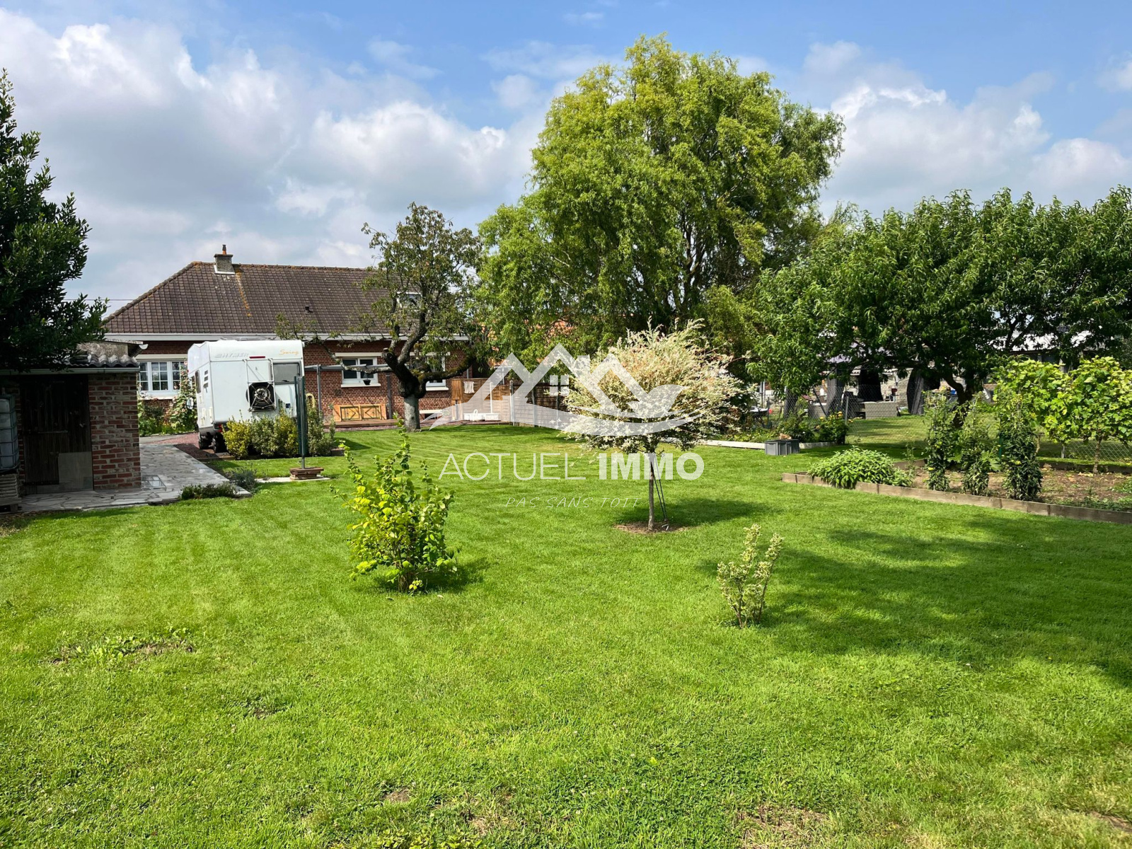 Le jardin, exposé plein sud, offre plus de 900 m² de pelouse joliment arborée d'arbres fruitiers.